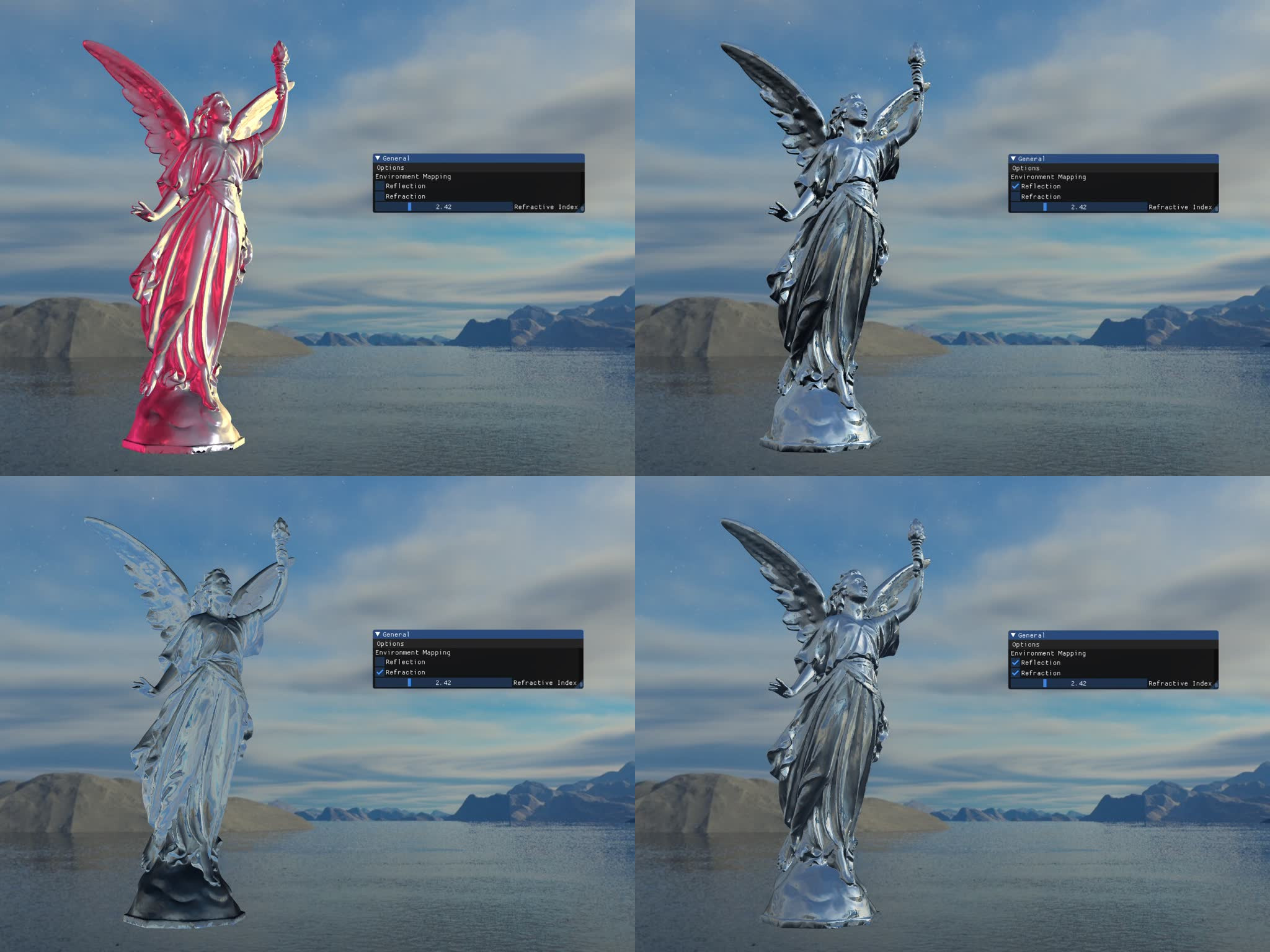 Reflection and Refraction sample from the generated cube map after appropriate reflection and refraction calculations for each fragment.